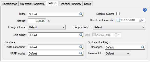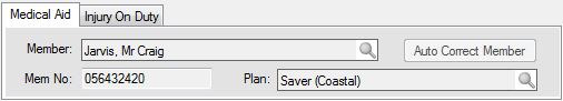 Plan The patient's medical aid plan can be selected here.
