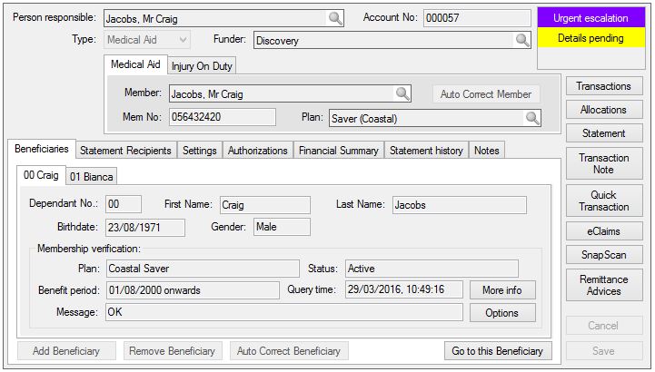 is a typical example of a medical aid account: