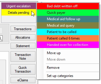 that have been set on the account. Each account can have one or more categories. However, the top one determines which background colour is used when displaying the account in lists, reports and