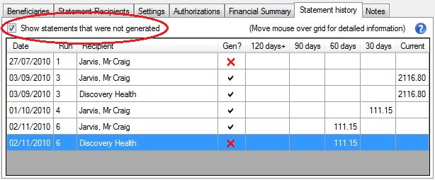 statement was not generated for the recipient at that statement run. Note