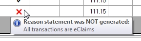 statement was generated. A red X indicates that a statement was not