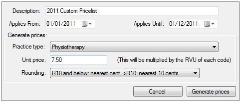 This will determine which codes' prices will be calculated. Ensure that this matches your practice type. If you have a group