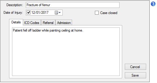 up a case is a Description and ICD diagnosis codes. However, you can also