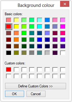 When you click on the box to set the background colour the standard Windows colour selection dialog will appear: