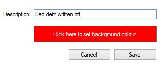 If you click Add Panacea will allow you to enter a Description for the new category. Click in the box below the Description to set the background colour: