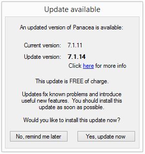 If you click Yes, update now Panacea will install the update.