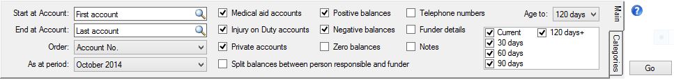 is checked Panacea will display two lines per account, one line displaying the person responsible's balance and one displaying their funder's balance. If it is not checked then only one line will be displayed per account with the overall balance.