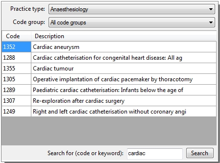 allows you to search only for codes in a certain code group. For more