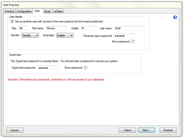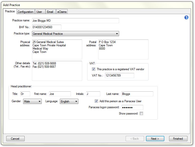 Before using Panacea you need to set up your practice details. Panacea can