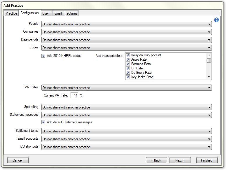 At a later stage you will need to configure your practice's billing policy and