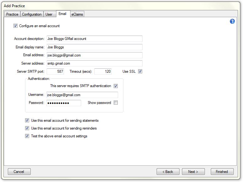 to configure your practice to use this email account for sending statements.