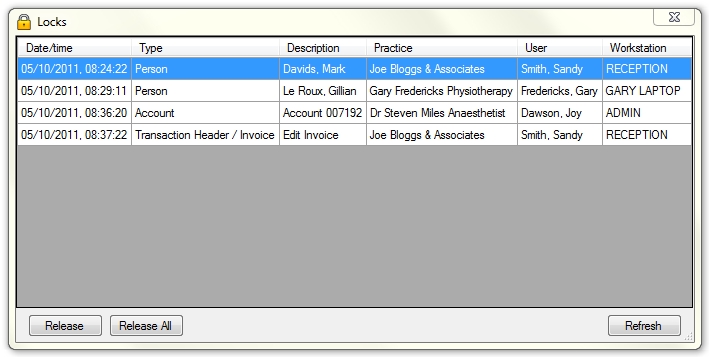 on System - Locks and the following window will be displayed:
