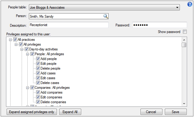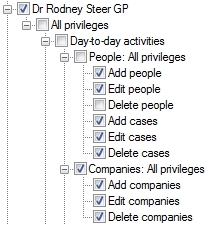 Panacea lists a hierarchy of privileges which can be assigned to the user. In the