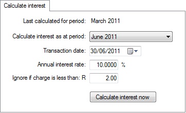This tab will automatically generate interest charges on overdue accounts. You