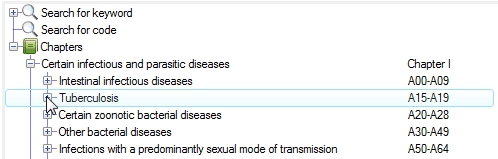 Click on the + next to Chapters and all ICD chapters will be diisplayed. You can then drill down further by clicking on the + next to items that you want to expand. |