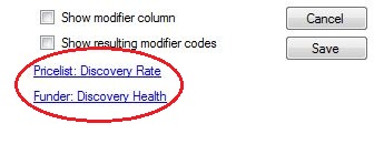 Modifier column. Automated modifiers (such as physio code 0008)