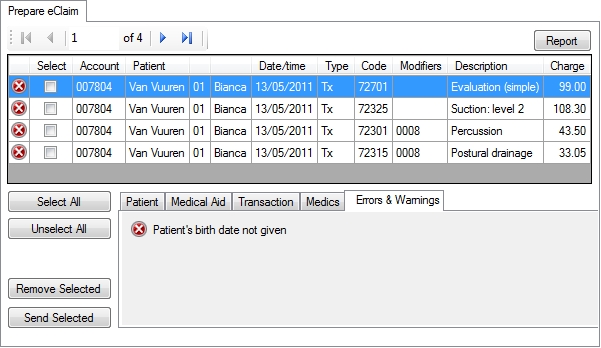 ) or it may occur when you click Send all unsent eClaims or