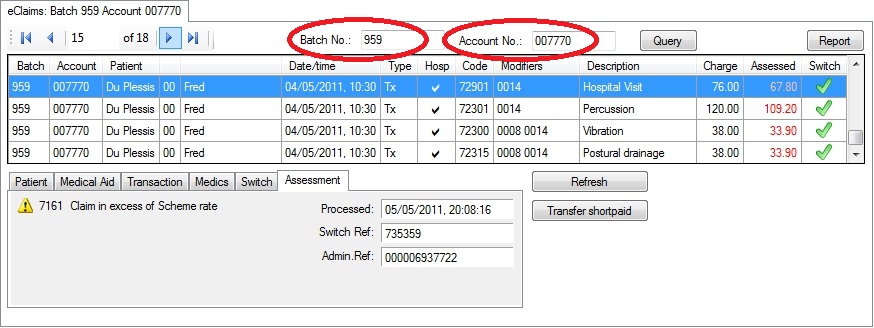 or an account number, then click Query. Panacea will then search for matching eClaims.